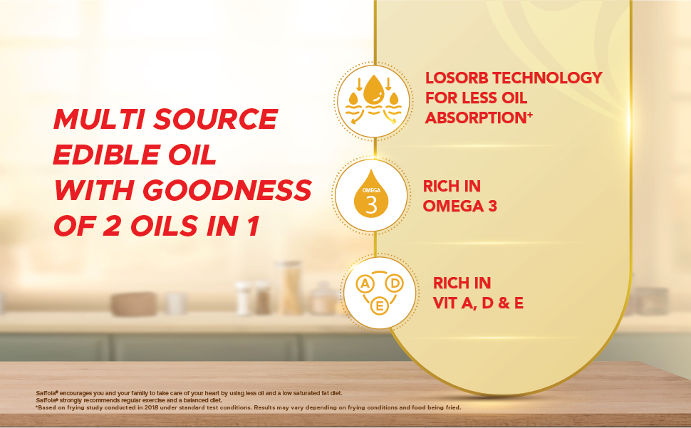 *Saffola® Active is a Multi-Source Edible Oil, Rich in Omega 3, Oryzanol and fortified with Vitamins A & D.